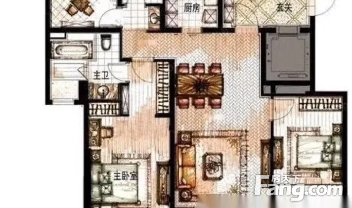 户型齐全,主打户型方正,独立衣帽间,明卫,明厨,主卧朝南三居