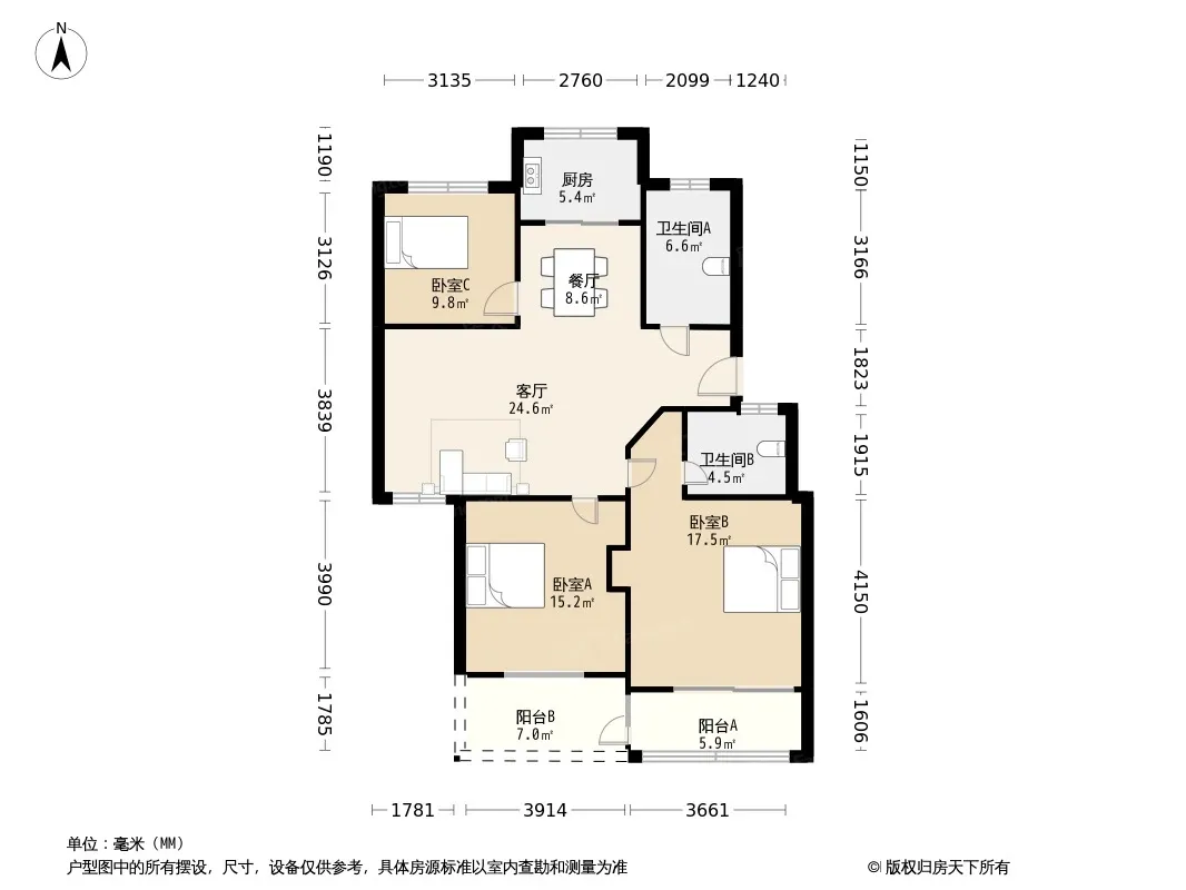 户型齐全,主打户型方正,明厨,明卫,客厅朝南,双阳台三居