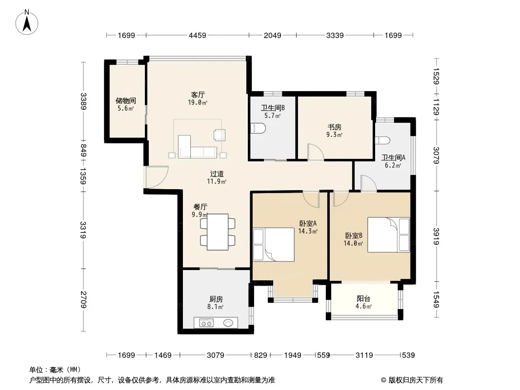 户型齐全,主打户型方正,明厨,明卫,客厅朝南,双阳台三居