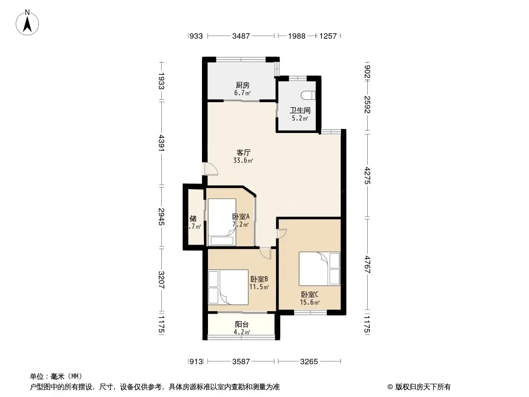 户型齐全,主打户型方正,明卫,明厨,客厅朝南,主卧朝南三居