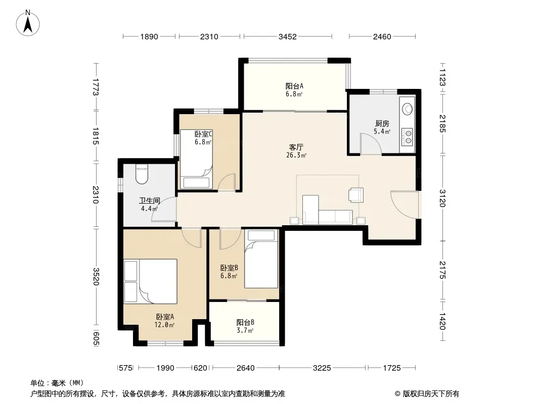 户型齐全,主打户型方正,明卫,明厨,主卧朝南三居