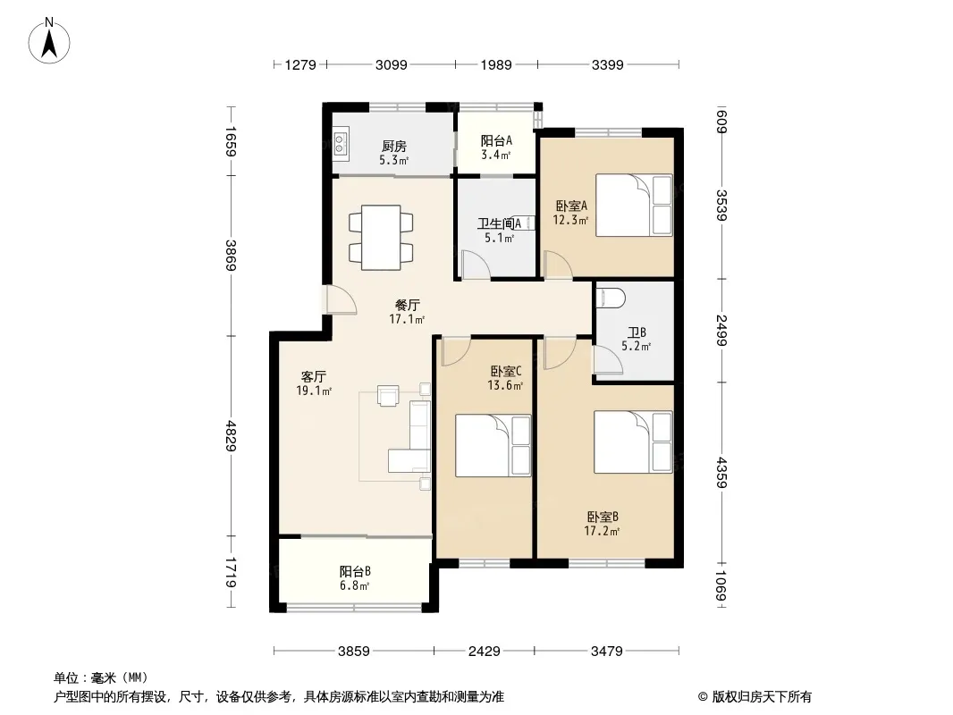 户型齐全,主打明厨,客厅朝南,双卧朝南,主卧朝南三居