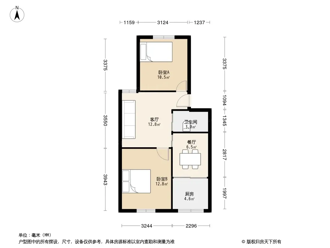 户型齐全,主打户型方正,明厨,主卧朝南二居