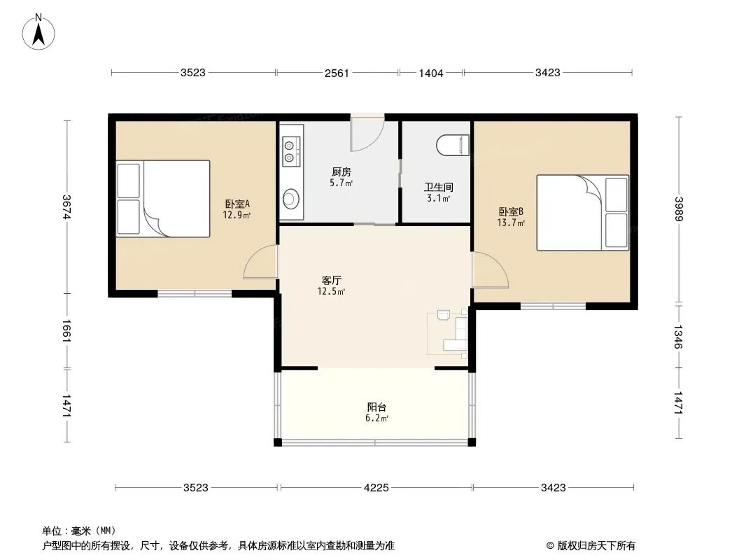 户型齐全,主打户型方正,明厨,主卧朝南二居