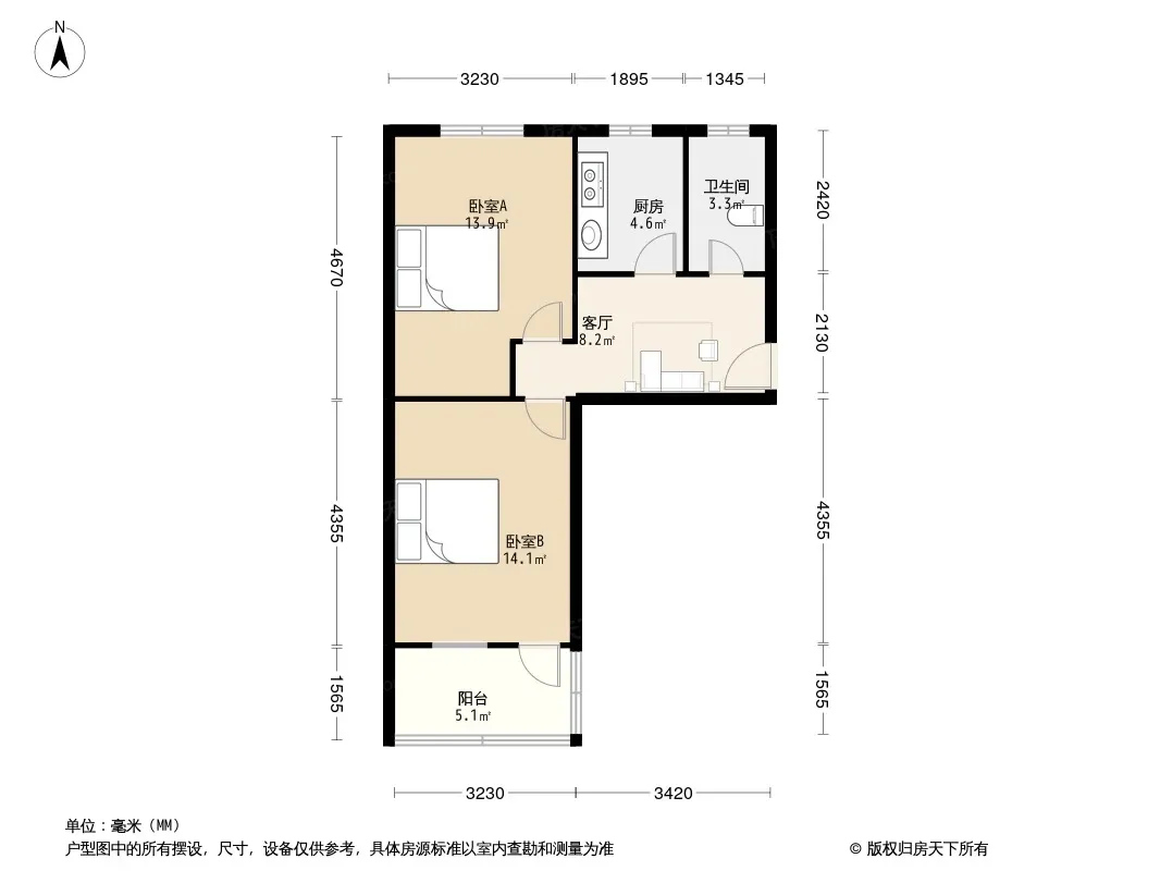 户型齐全,主打明厨,明卫,客厅朝南,全明格局二居