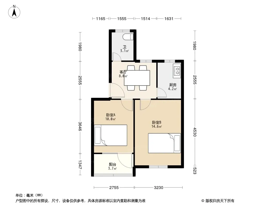 户型齐全,主打户型方正,明卫,明厨二居