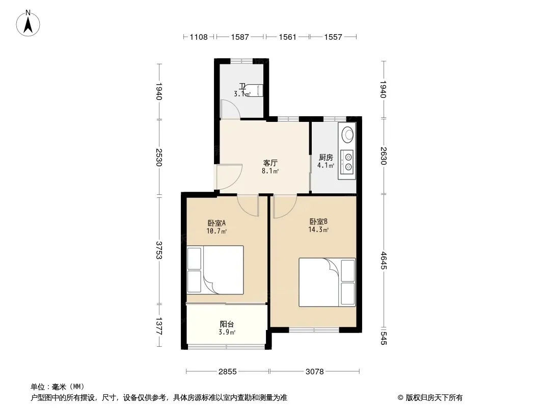 户型齐全,主打户型方正,明卫,明厨二居