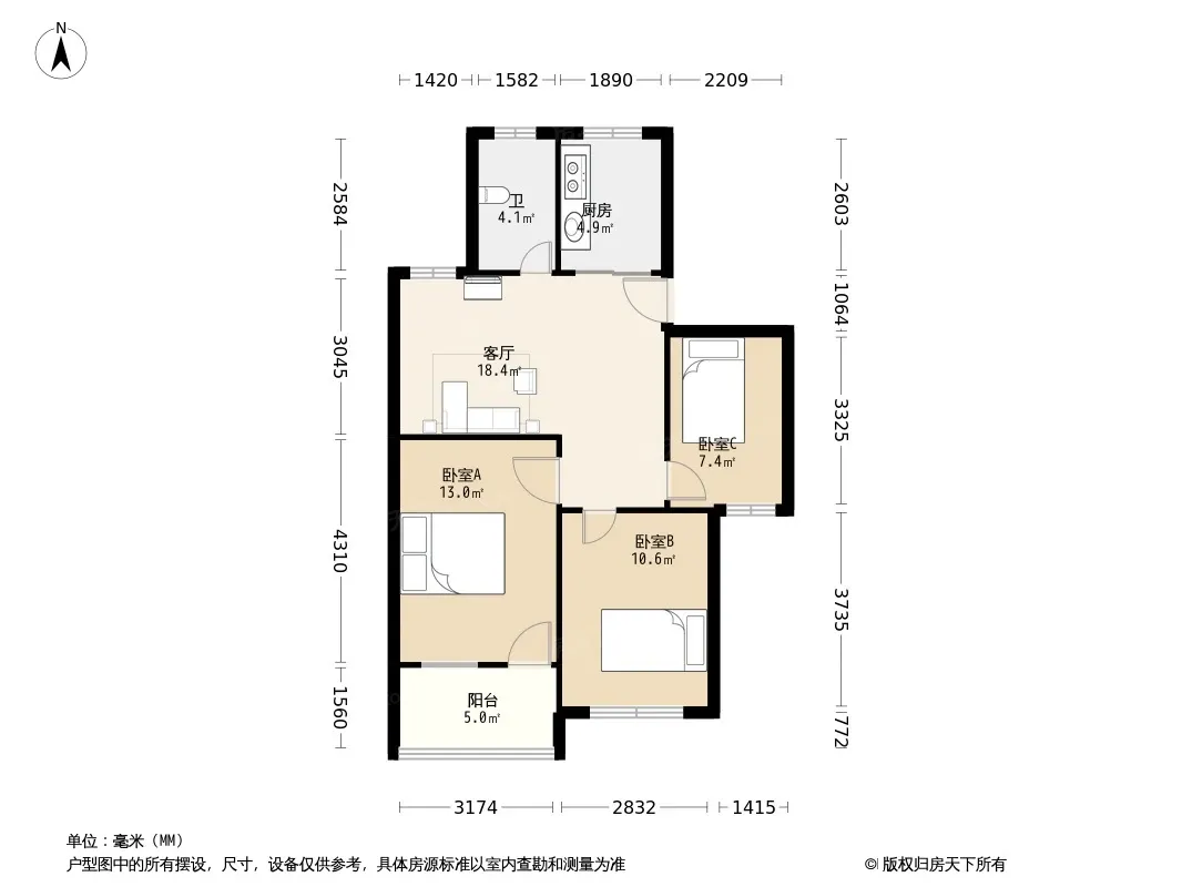 3室2厅1卫