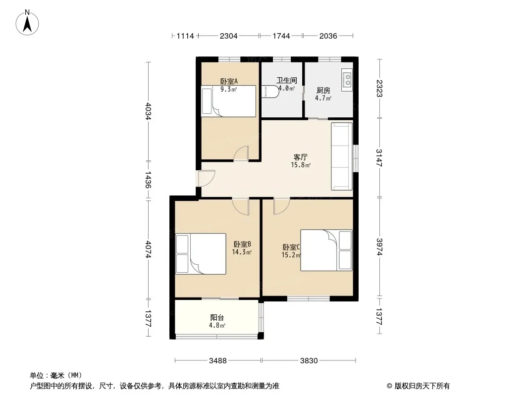 户型齐全,主打明厨,明卫,客厅朝南,全明格局,双卧朝南,主卧朝南三居