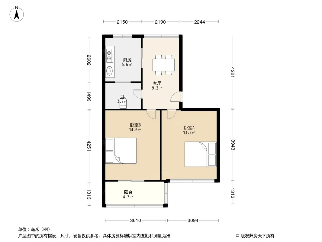 户型齐全,主打明厨,客厅朝南二居