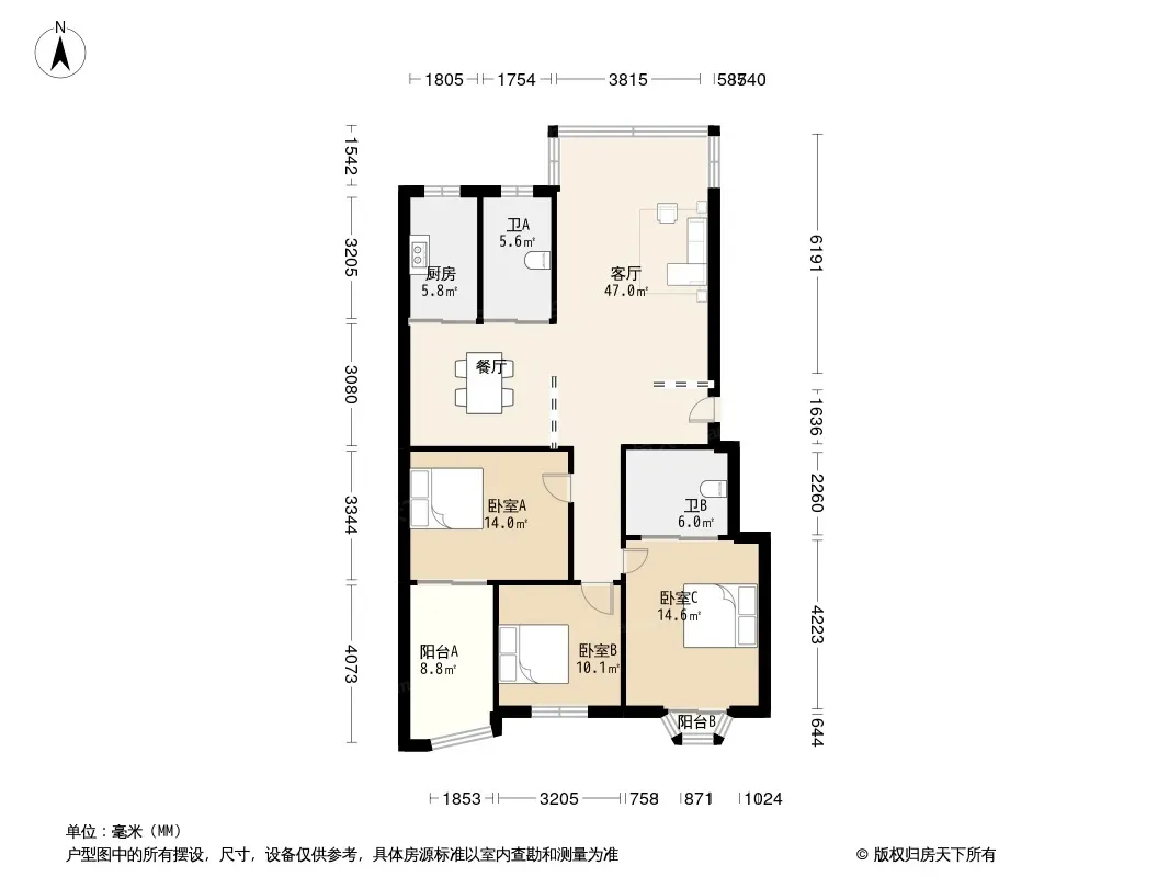 户型齐全,主打户型方正,明卫,明厨,独立衣帽间,客厅朝南三居
