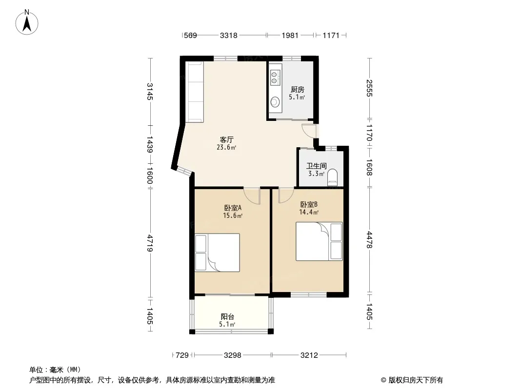 户型齐全,主打户型方正,明厨,明卫,双卧朝南,主卧朝南二居