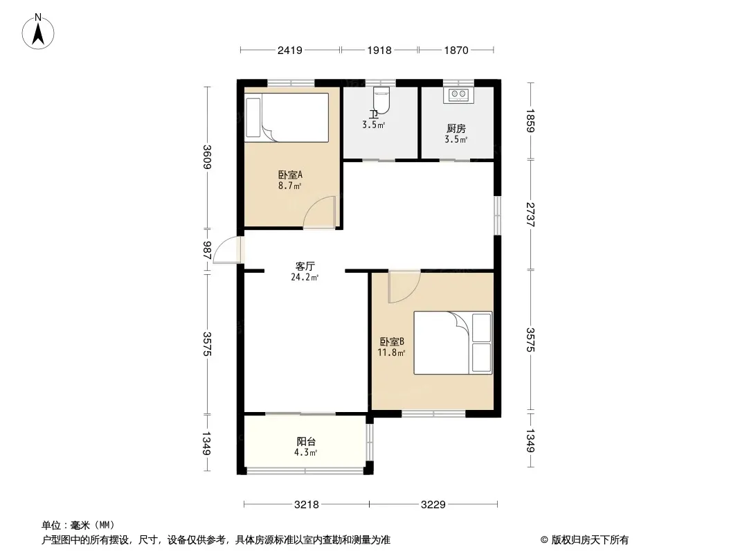 户型齐全,主打户型方正,明厨,明卫,双卧朝南,主卧朝南二居