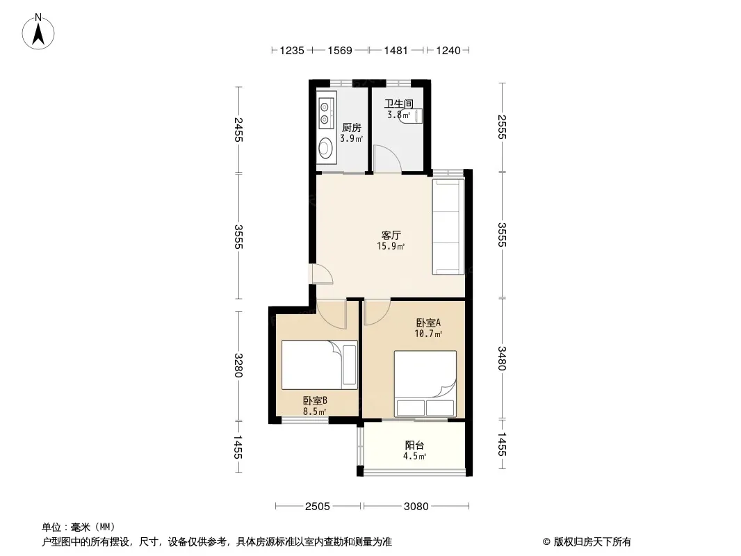 户型齐全,主打户型方正,明厨,明卫,客厅朝南,双阳台二居