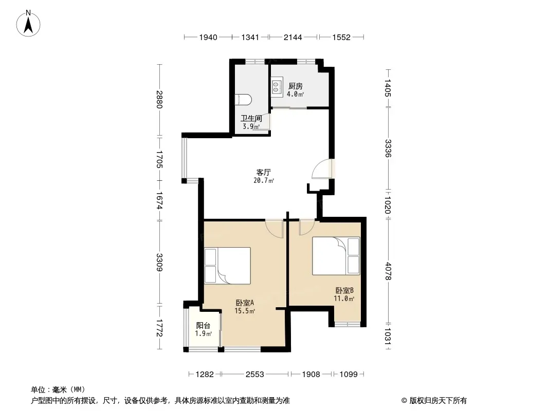 户型齐全,主打户型方正,明厨,明卫,客厅朝南,双阳台二居