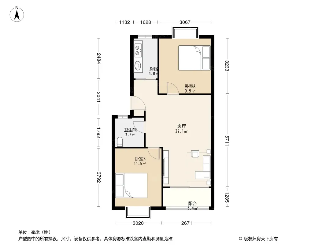 刚需房 经典2房 户型方正