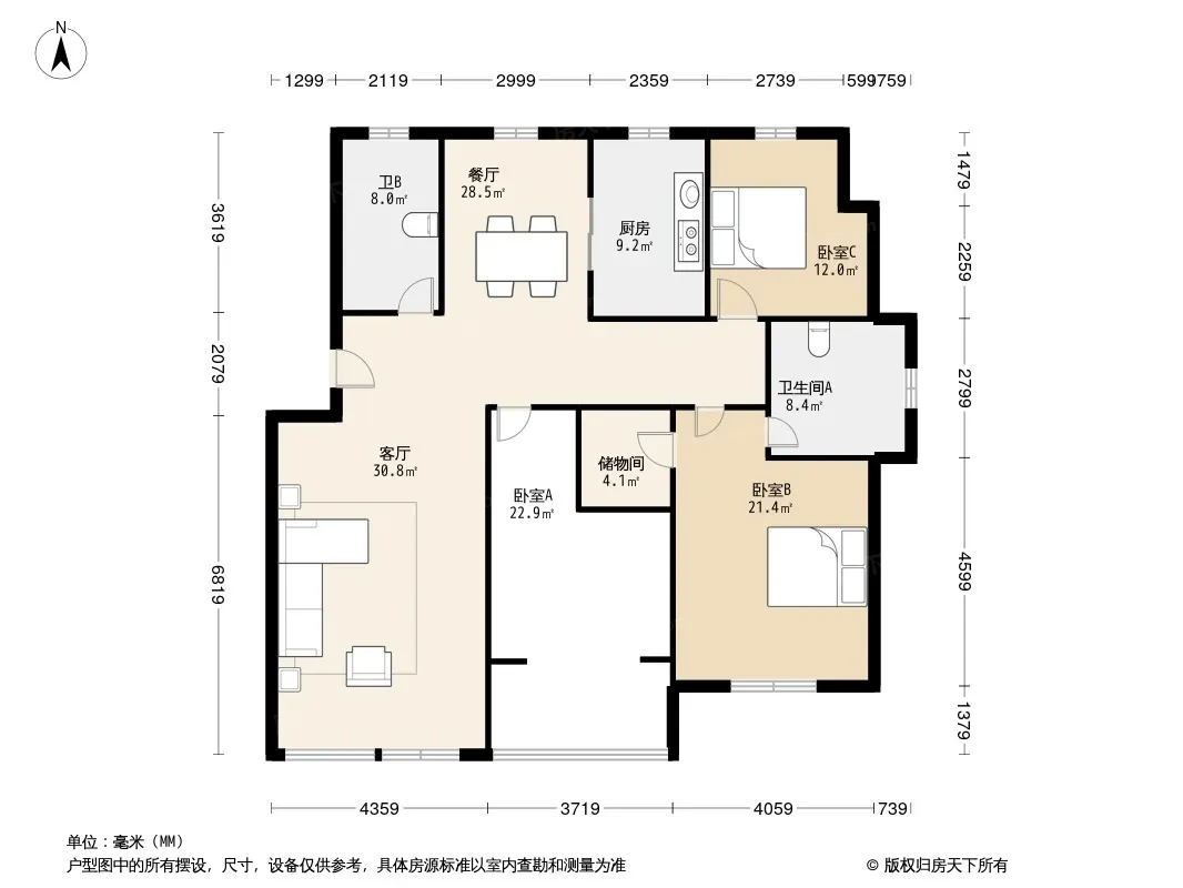 户型齐全,主打户型方正,明卫,明厨,双卧朝南,主卧朝南三居