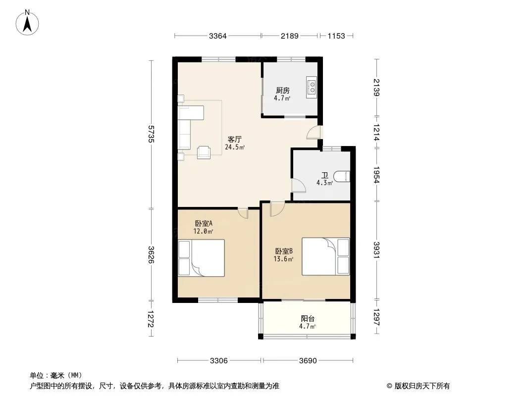 户型齐全,主打户型方正,明厨,明卫,客厅朝南,全明格局,主卧朝南二居