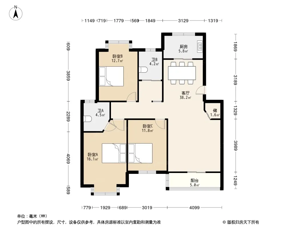户型齐全,主打户型方正,明卫,明厨,客厅朝南三居
