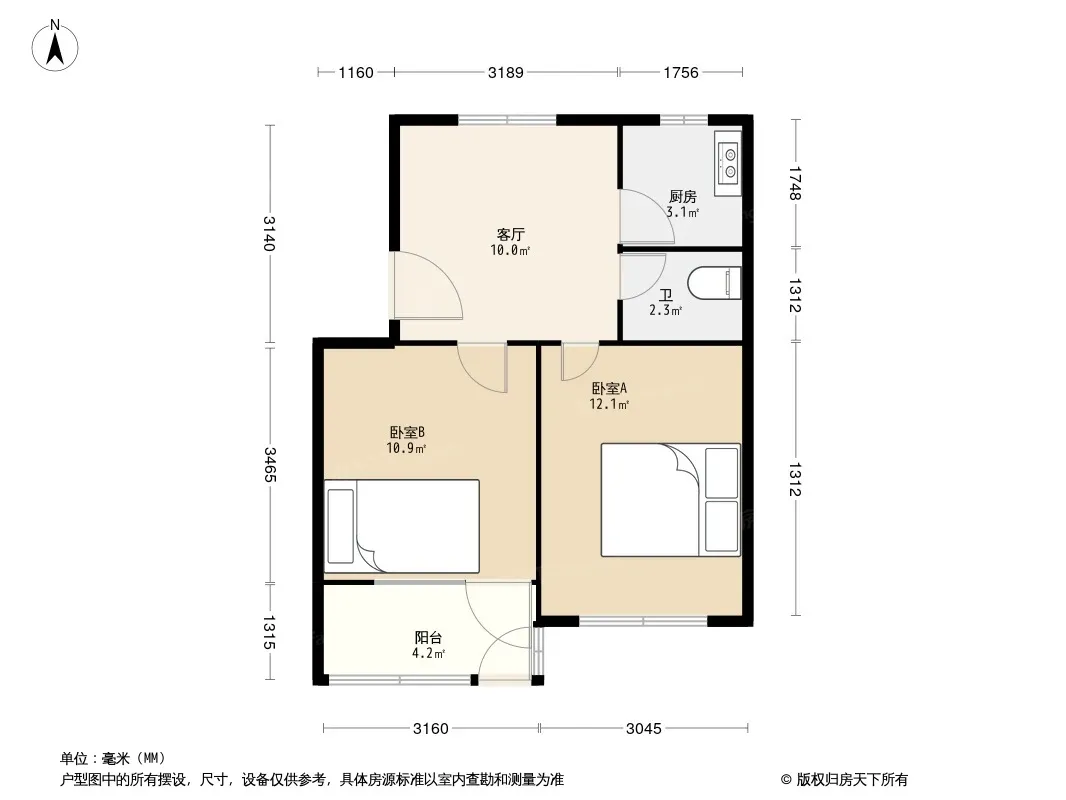 户型齐全,主打户型方正,明厨,客厅朝南,主卧朝南二居