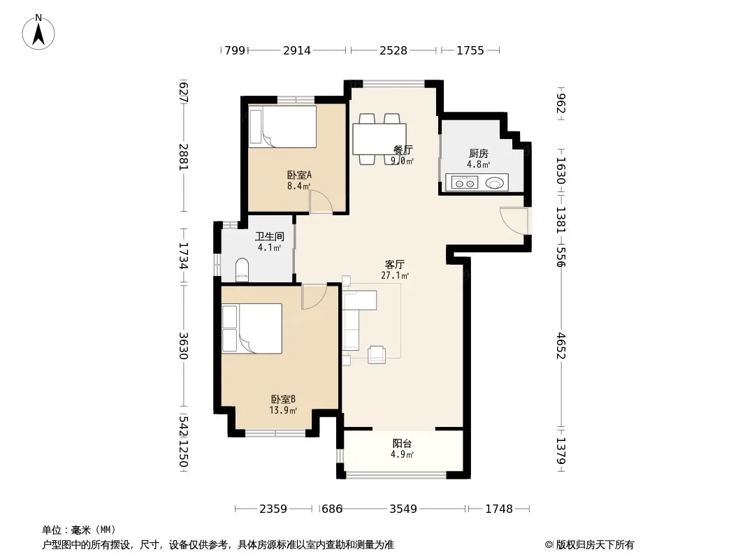 户型齐全,主打户型方正,明卫,明厨,双阳台,双卧朝南三居