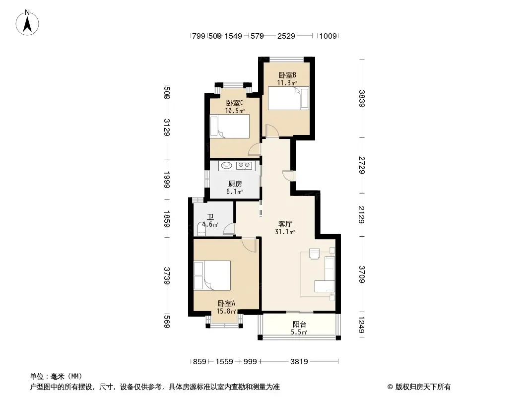 *获取完整户型报告,同时会有免费语音讲解服务