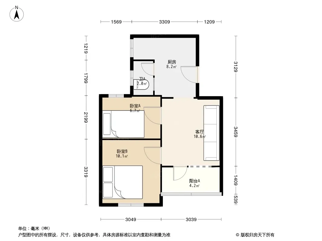 户型齐全,主打户型方正,明卫,明厨,客厅朝南,全明格局,双卧朝南二居