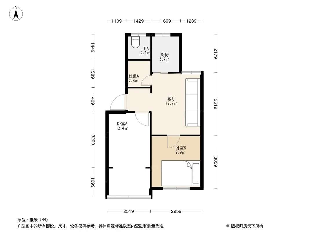 户型齐全,主打户型方正,明卫,明厨,客厅朝南,全明格局,双卧朝南二居