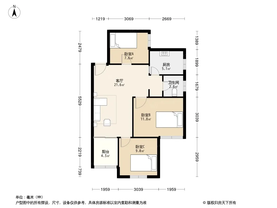 *获取完整户型报告,同时会有免费语音讲解服务