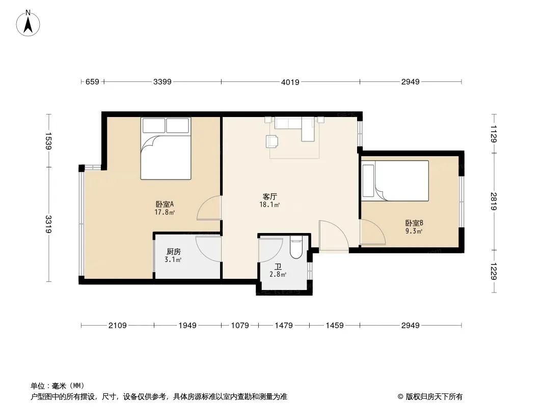 户型齐全,主打明卫,客厅朝南二居