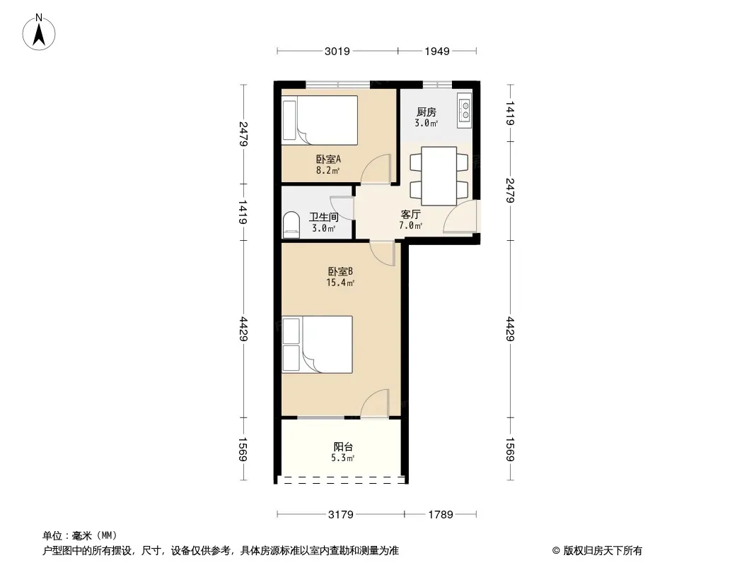 户型齐全,主打明厨,明卫,客厅朝南,全明格局三居