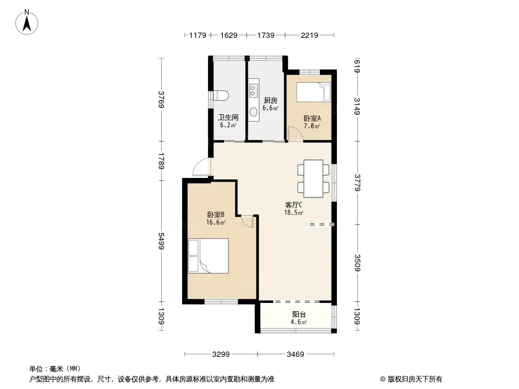 户型齐全,主打明厨,明卫,客厅朝南,全明格局三居