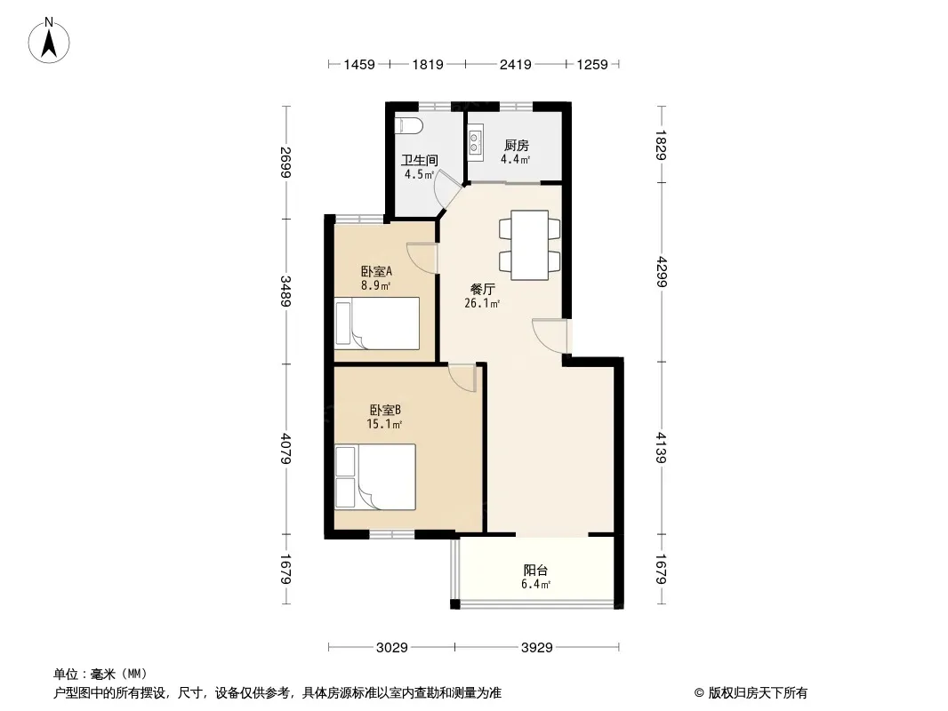 户型齐全,主打户型方正,明卫,明厨,客厅朝南,主卧朝南三居