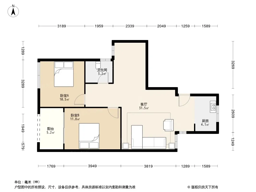 户型齐全,主打户型方正,明卫,明厨,客厅朝南,全明格局,双卧朝南三居