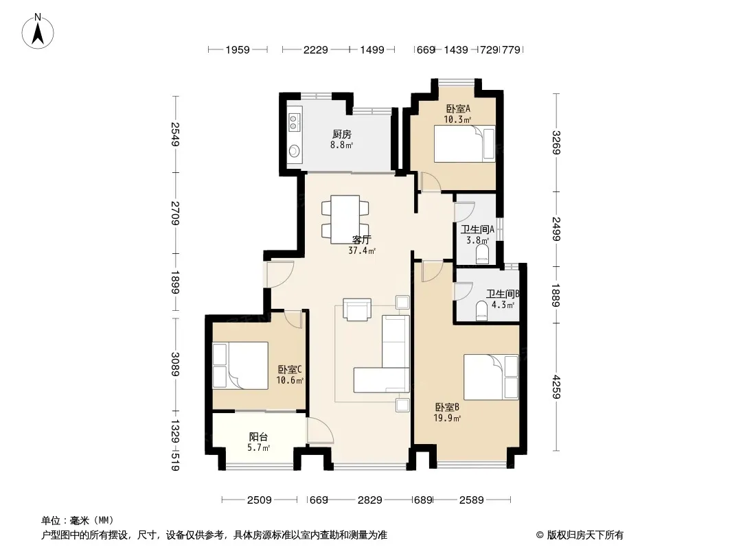 户型齐全,主打户型方正,明厨,明卫,客厅朝南,主卧朝南三居