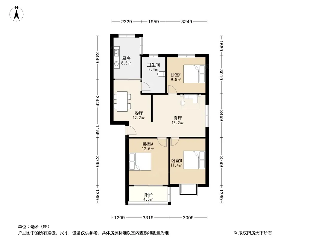 户型齐全,主打户型方正,明卫,明厨,主卧朝南三居