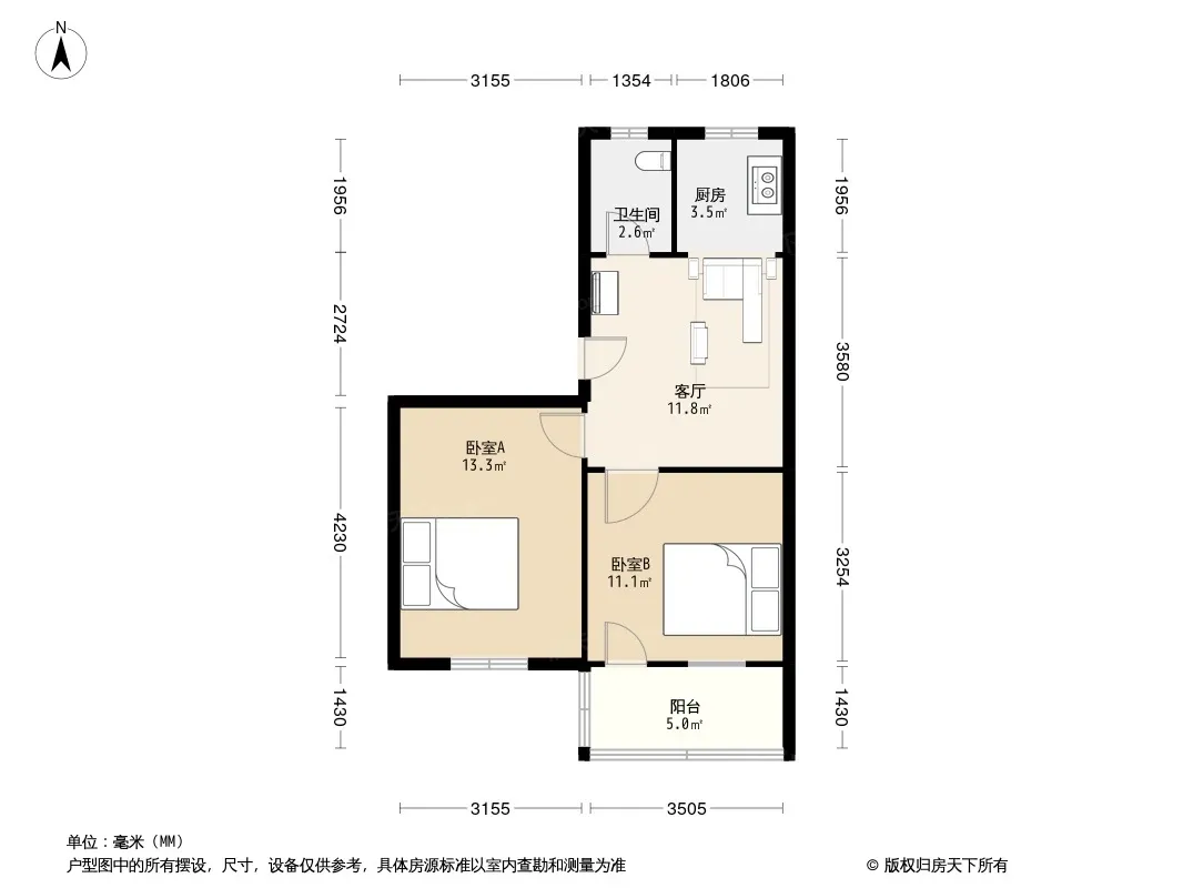 户型齐全,主打户型方正,明卫,明厨,双卧朝南,主卧朝南二居