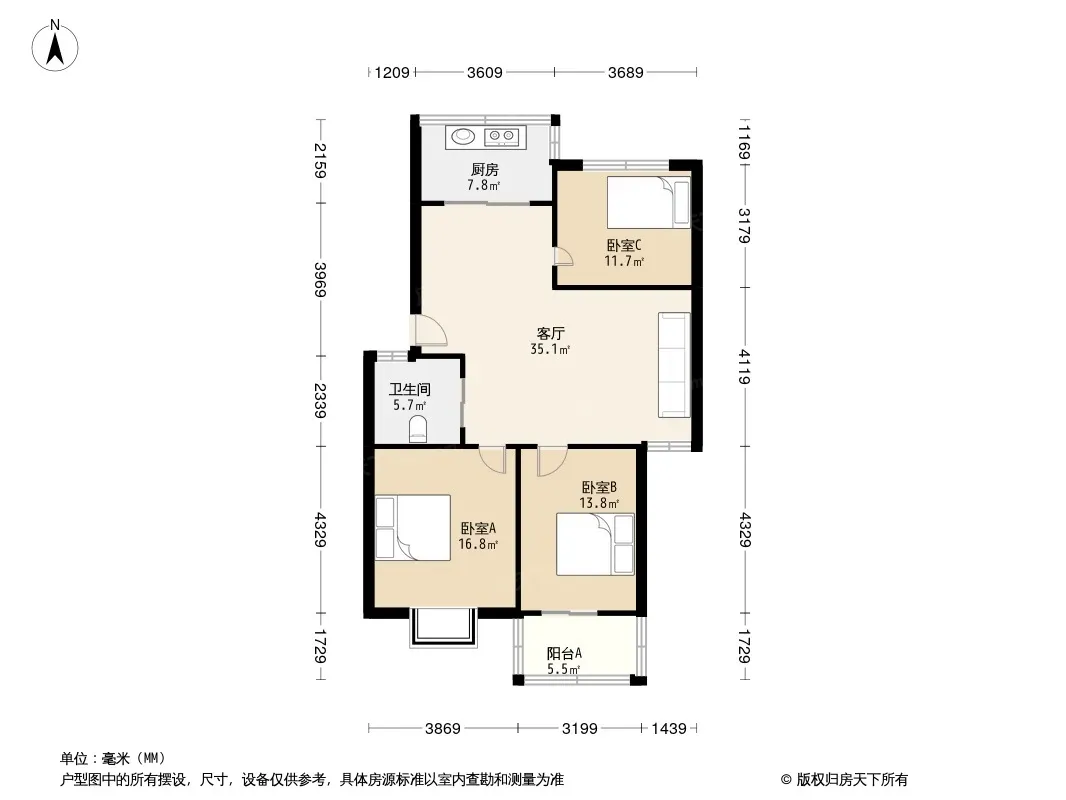 户型齐全,主打户型方正,明厨,客厅朝南,主卧朝南三居