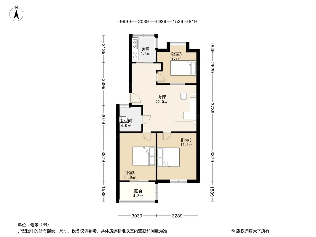 户型齐全,主打户型方正,明厨,客厅朝南,主卧朝南三居