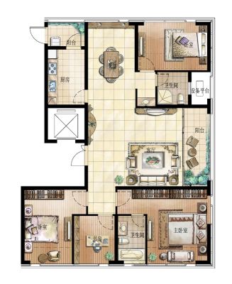 星河国际花园户型主要有119平-154平的户型方正,明厨,明卫,客厅朝南,主卧朝南的三居 、153平-225平的明卫,客厅朝南的四居 。
