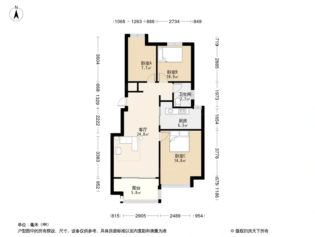 户型齐全,主打明厨,明卫,主卧朝南三居