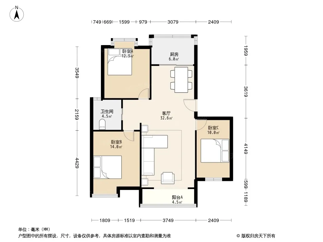 户型方正 三开间朝南 家具家电 视野好 不占户口