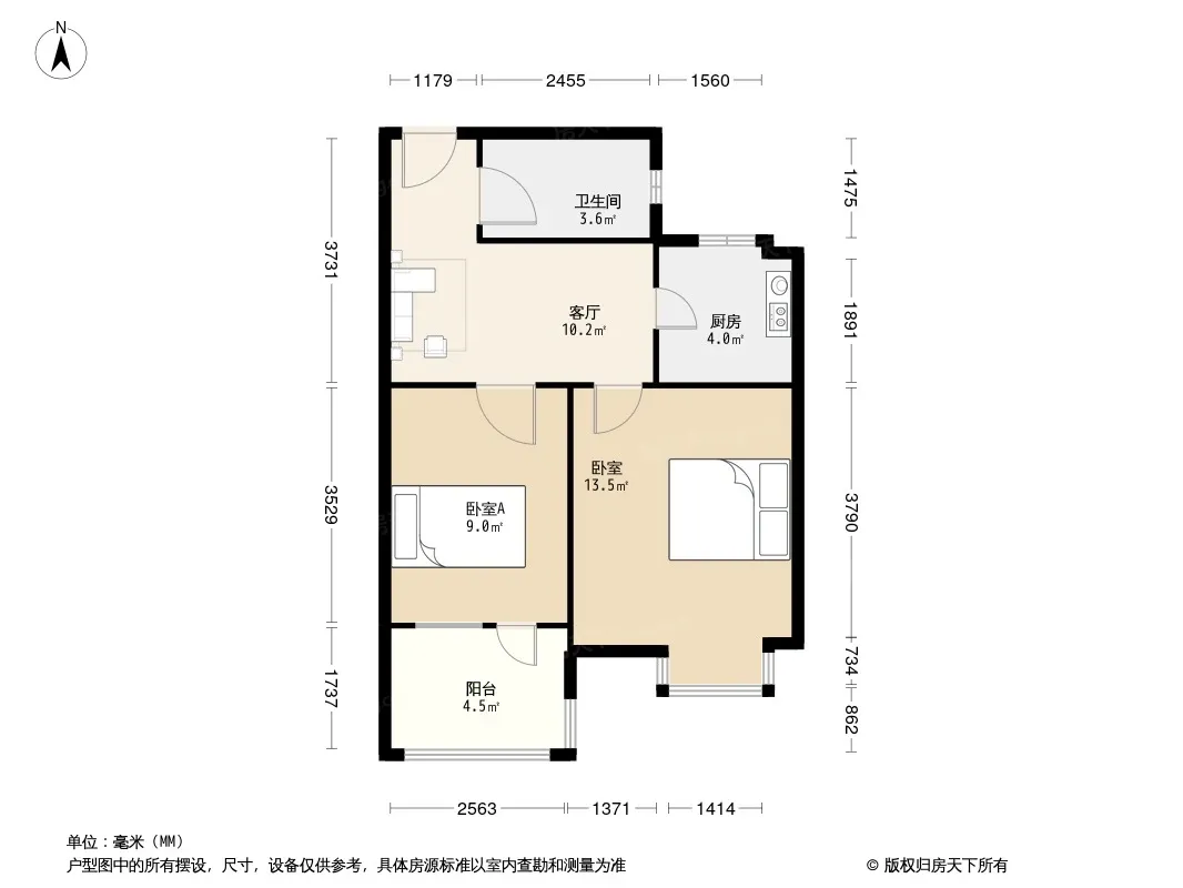 户型齐全,主打户型方正,明卫,明厨,主卧朝南二居
