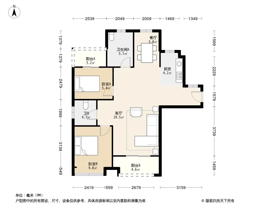 户型齐全,主打南北通透,全明格局三居