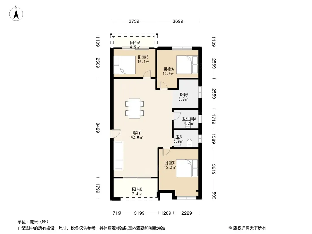 户型齐全,主打南北通透,全明格局三居