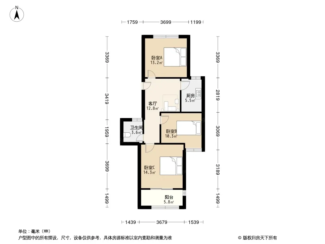 户型齐全,主打户型方正,明卫,明厨,客厅朝南,全明格局,主卧朝南三居