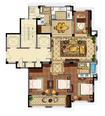 绿城御园户型主要有123平-167平的户型方正,明厨,明卫,客厅朝南,主卧朝南的三居 、166平-185平的露台,南北通透,主卧带卫,带衣帽间,全明格局,干湿分离的四居 。