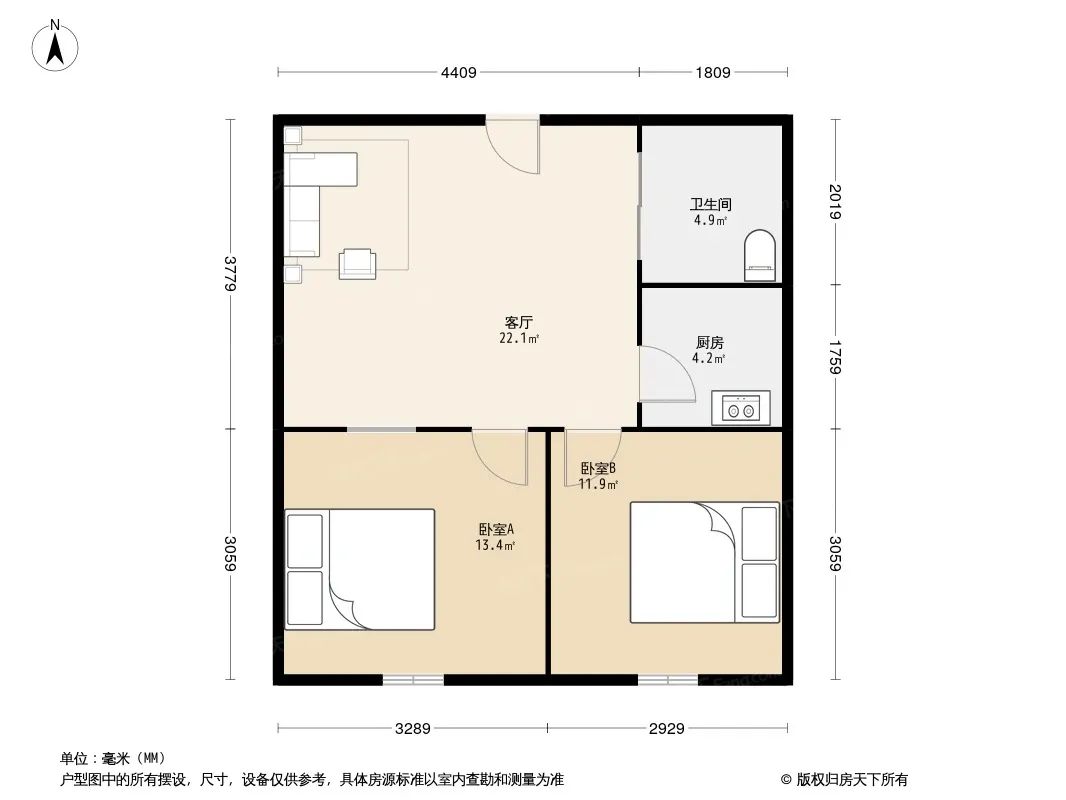户型齐全,主打客厅朝南,主卧朝南二居