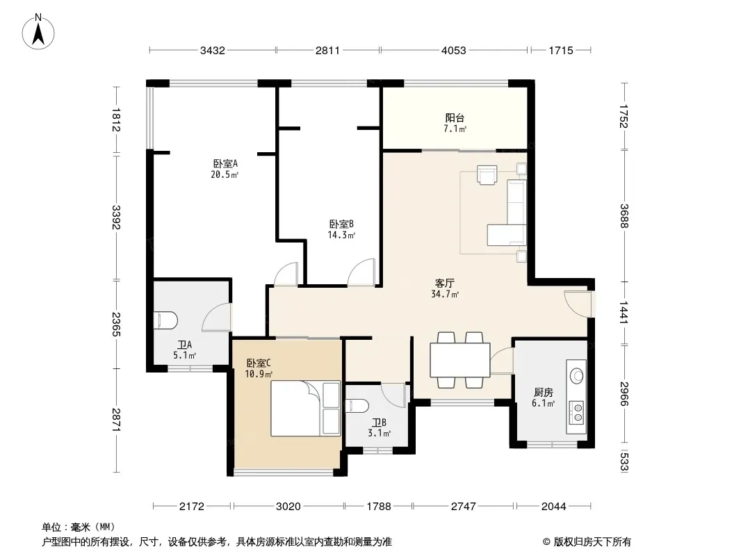 户型齐全,主打户型方正,明卫,客厅朝南,双卧朝南,主卧朝南三居