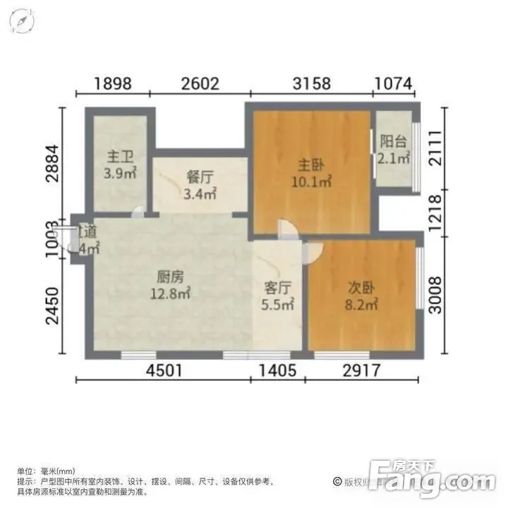 户型齐全,主打户型方正,明厨,客厅朝南,主卧朝南二居